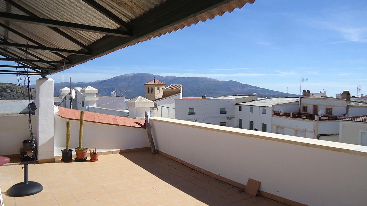 Entorno: Casa típica de la Alpujarra almeríense de 3 plantas, altos techos, mucha luz, gran terraza, suelos hidráulicos, puerta de madera y balcones a la plaza mayor del pueblo.