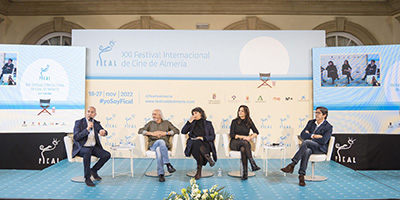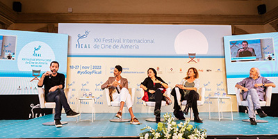 FICAL ha reunido en una mesa redonda a cuatro profesionales que han rodado en Almería para que compartan sus experiencias. Moderados por Puy Oria, esta tarde han participado los directores Montxo Armendáriz y Óskar Santos y los actores Eulalia Ramón y Óscar Higares.